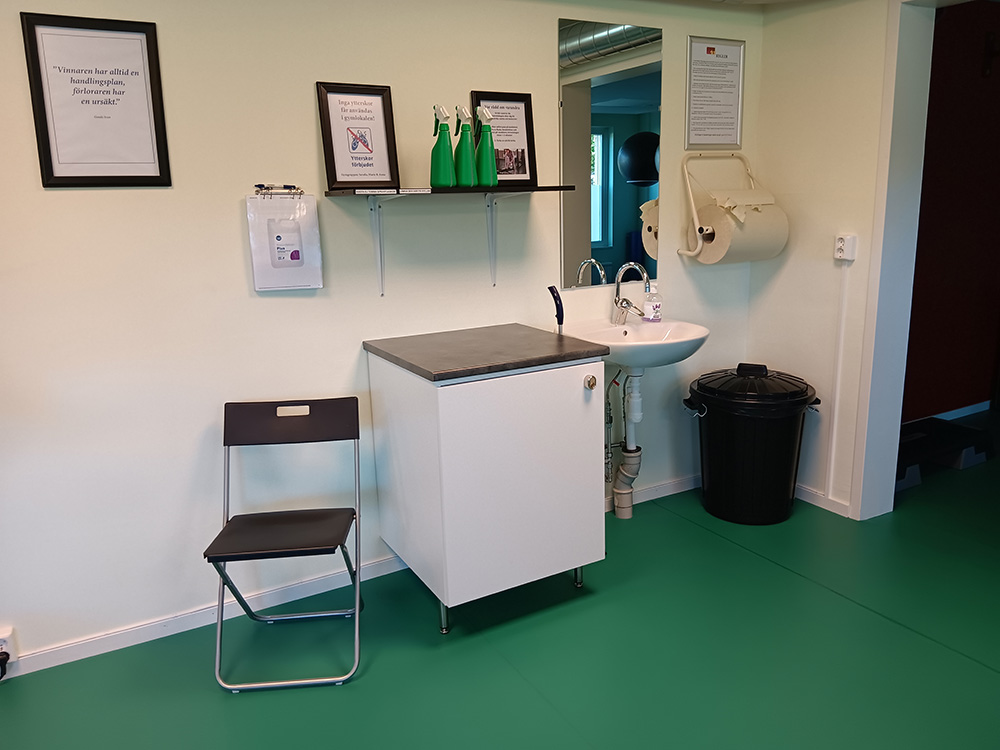 • Rengör väsentliga ytor på maskiner och redskap med ytdesinfektion efter användning. Se informationstavlor.